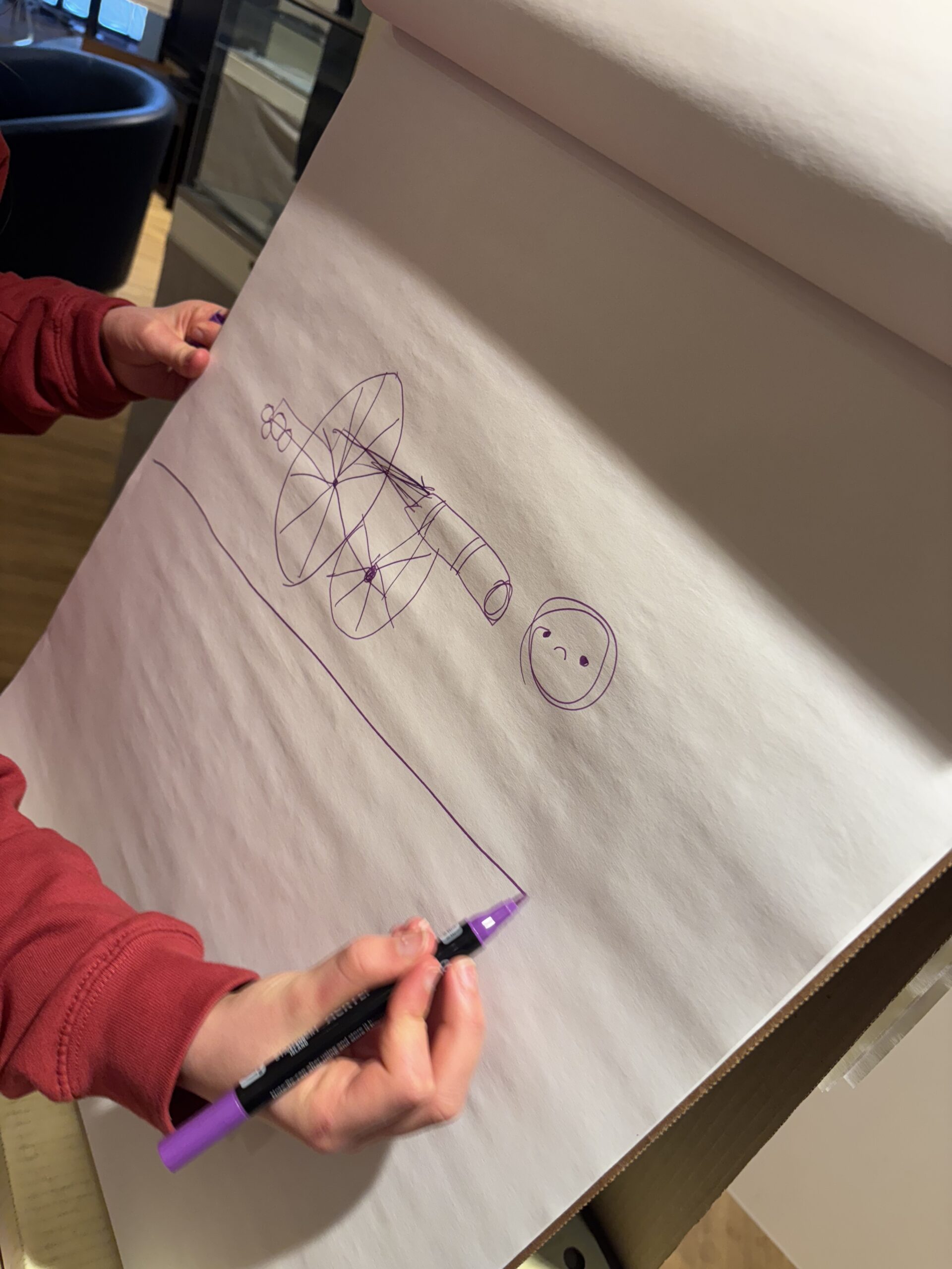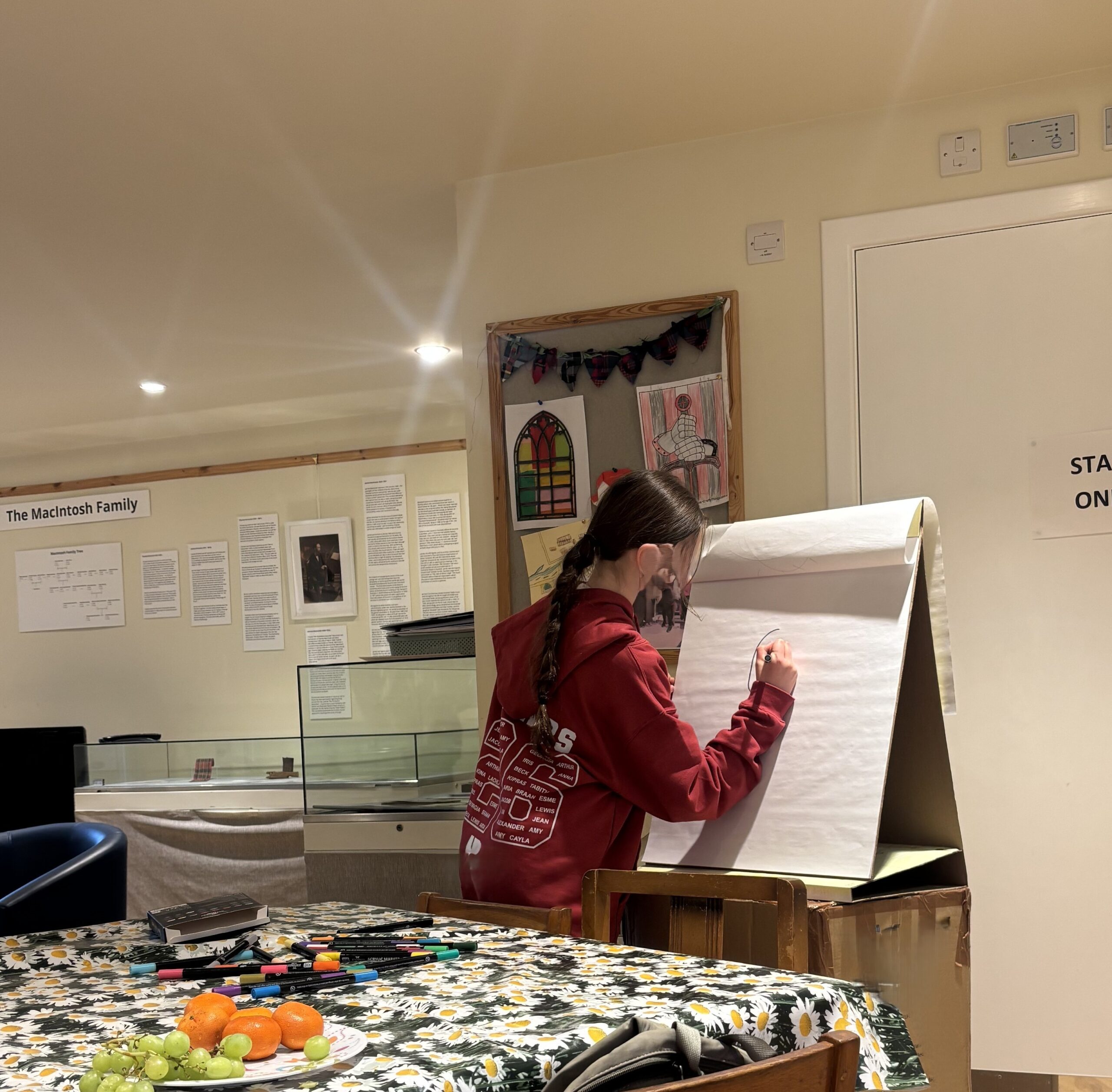 One of our young archaeologists’ drawing a canon and accompanying canon ball (which seems to be sad that it has been fired)